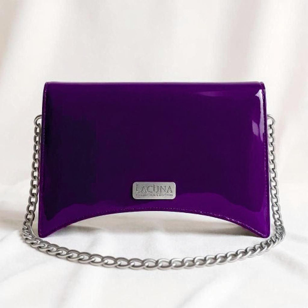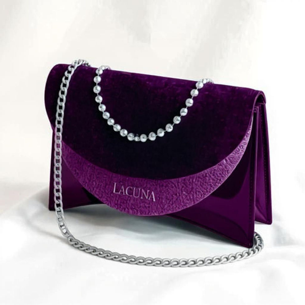 The Aristocrate in Vienna reimagines quiet opulence through color and form. Draped in Tyrian purple suede with patent and calf leather accents, its crescent silhouette feels both architectural and soft to the touch. The rhodium-plated chain reflects light like a silver melody — understated, deliberate, and timeless.